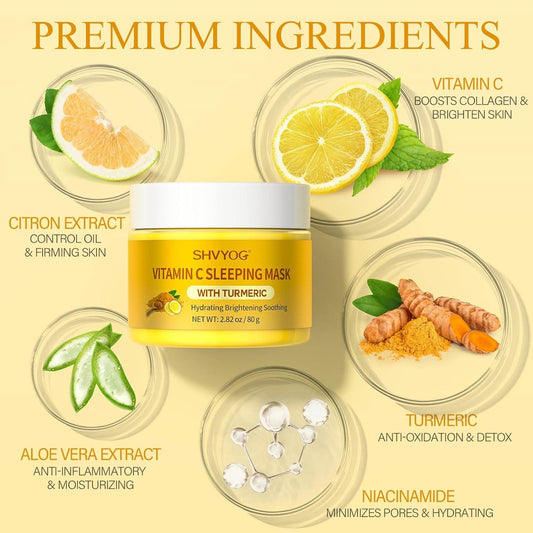 Vitamin C Turmeric Sleeping Mask, Vitamin C Overnight Face Mask With Turmeric, Vitamin C Brightening Sleep Face Mask Skin Care, Nourishing Hydrating Antioxidant Face Masks Skincare For Women - 2.82OZ