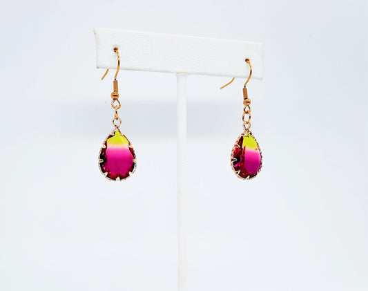 Yellow to Pink Ombre Teardrop Earrings