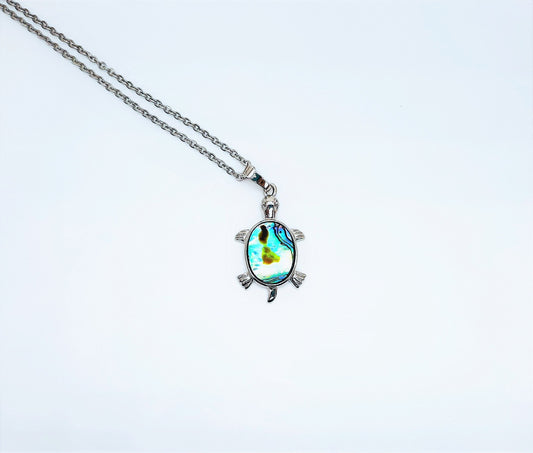 Abalone / Paua Seashell Small Sea Turtle Pendant Necklace