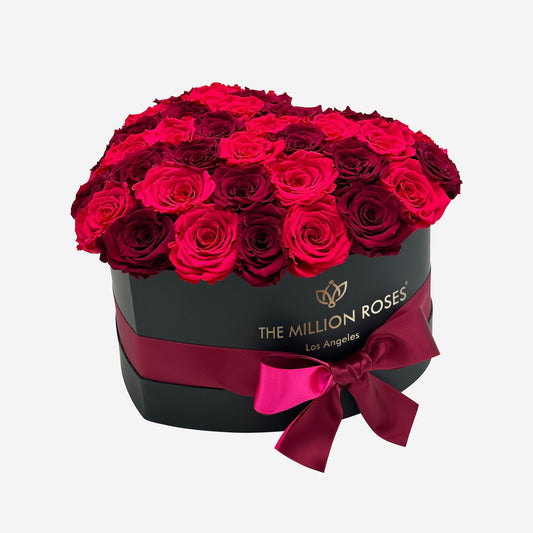 Heart Black Dome Box | Magenta & Burgundy Roses