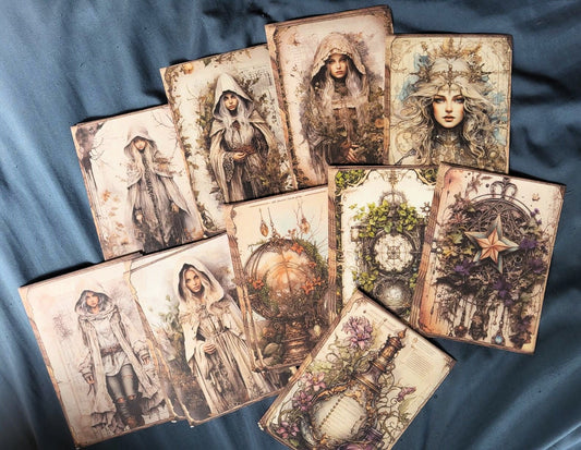 White Witches - Set of 10 4" x 6" Decoupage Wood Wall Panels