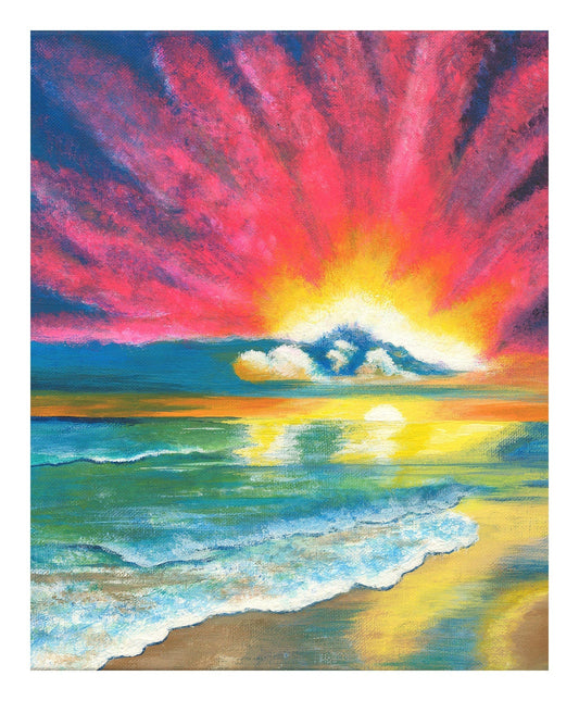 Matted Print of Waves on Beach and Pink Cloud Sunset