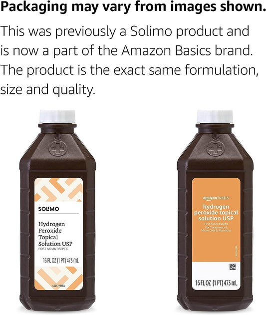Amazon Basics Hydrogen Peroxide Topical Solution USP, 16 Fl Oz (Pack of 1) (Previously Solimo)