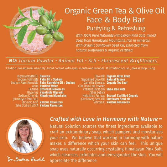 Natural Solution Himalayan Pink Salt Bath, Green Tea Soap Bar (6-Pack), Olive Oil & Green Tea Soap Bar (6-Pack)