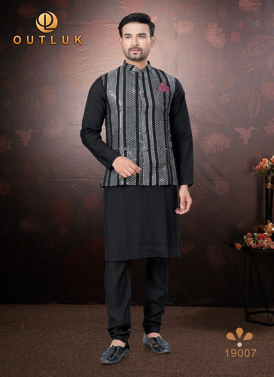 Black- Traditional Men's Kurta Pajama with Jacket– Ethnic Wear for Men-228