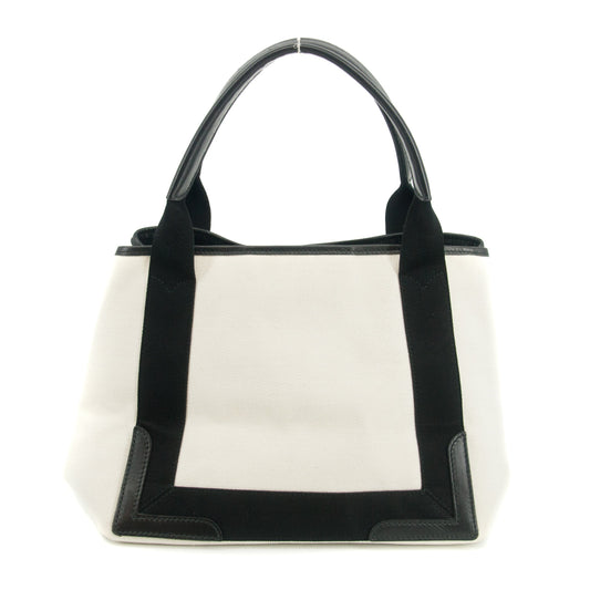Balenciaga Logo White / Black Canvas Cabas Tote Bag-#3163