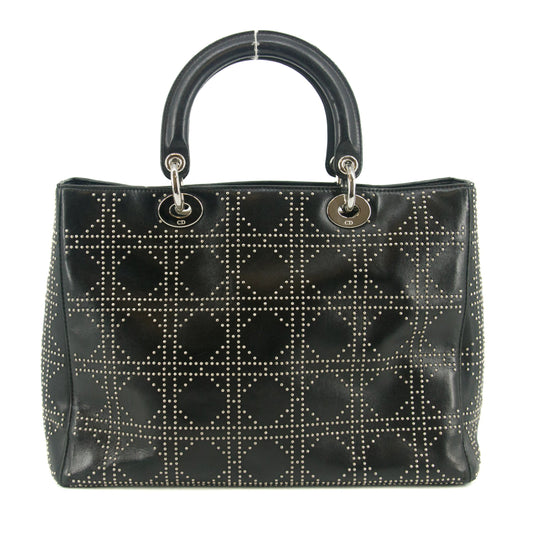 Christian Dior Leather Studded Black Lady Dior Tote Bag #8532