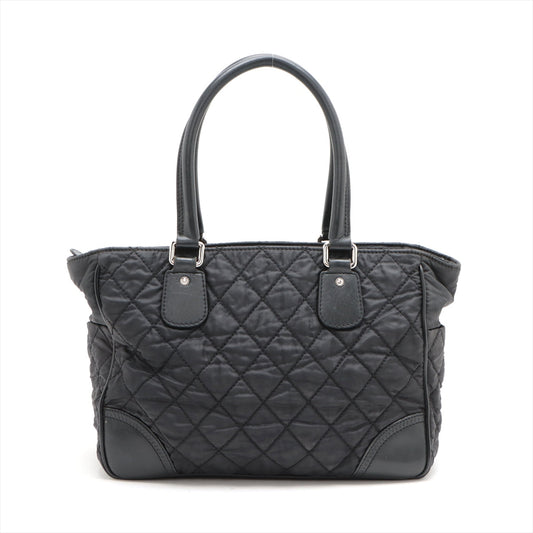Chanel Paris New York Line Nylon & Leather Tote Bag Black Silver Metal Fittings 10 Series #2881