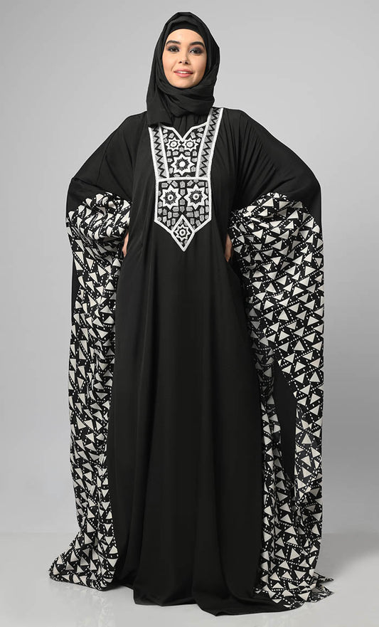 2 Pc Cape style Embroidered Black Abaya with Scalloped Edges