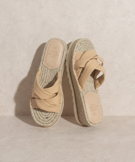 Oasis Society Rebel Beige Criss Cross Platform Espadrille Sandals