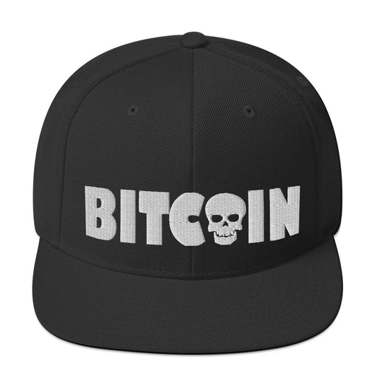 Bitcoin Skull (White Embroidery) Snapback Hat