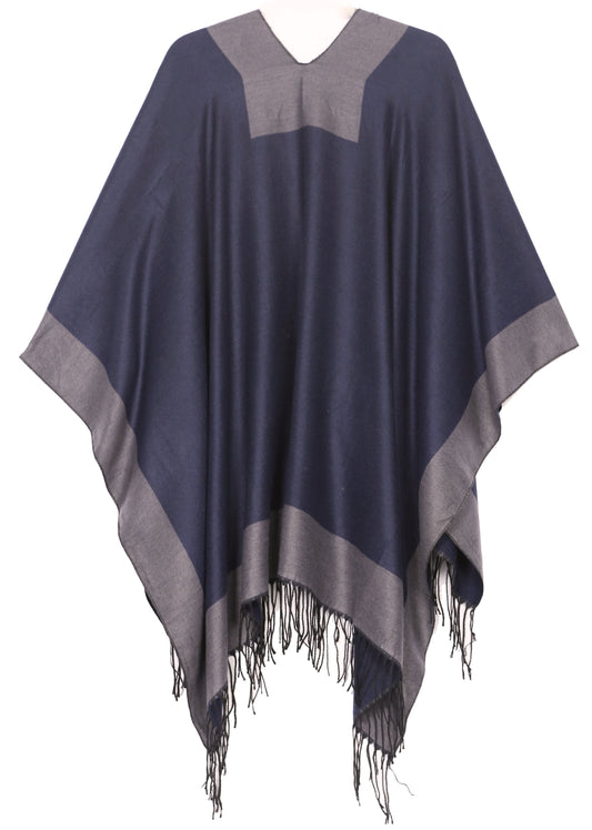 Sakkas Avi Women's Reversible Open Front Poncho Cardigan Ruana Cape Shawl W/Fringe