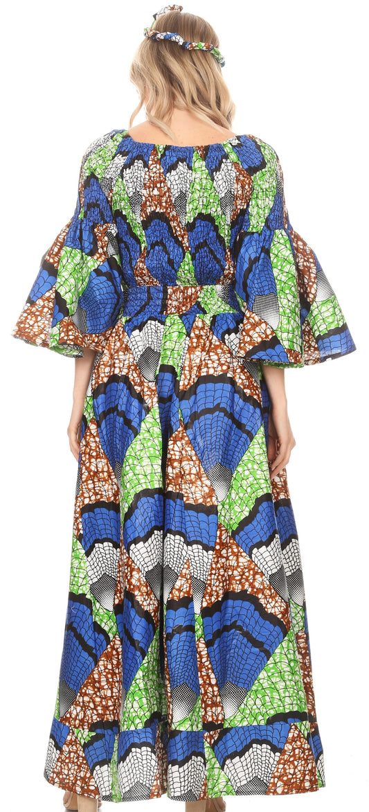 Sakkas Tesa Women's Off the Shoulder Top Pants Set African Ankara Print w/Pockets