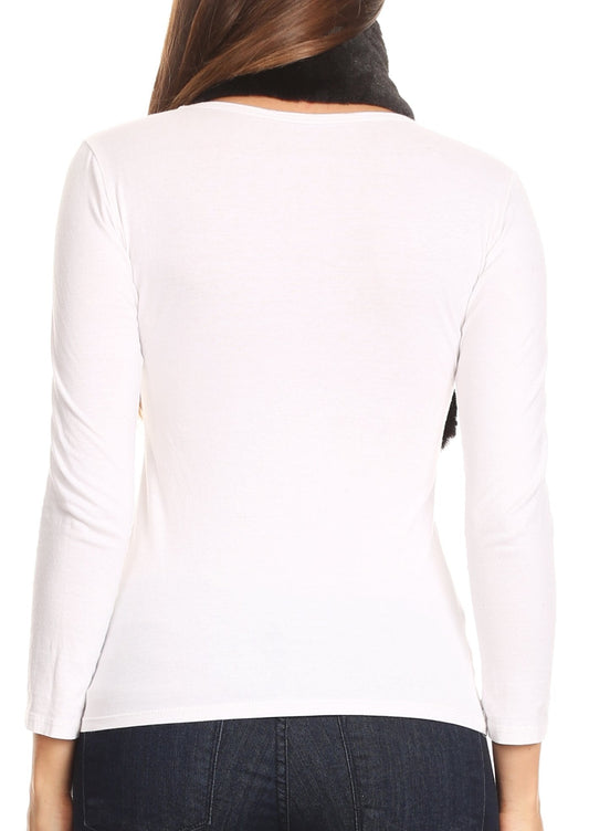 Sakkas Sele Short Two Textured Faux Fur Ribbed Knit Mixed Designed Infinity Scarf