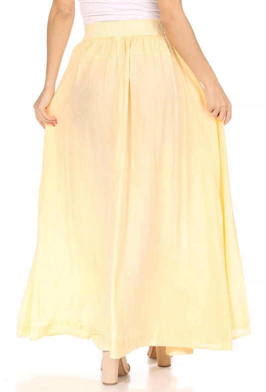 Sakkas Noemi Women's Long Maxi Summer Casual Boho Skirt Elastic Waist & Pockets