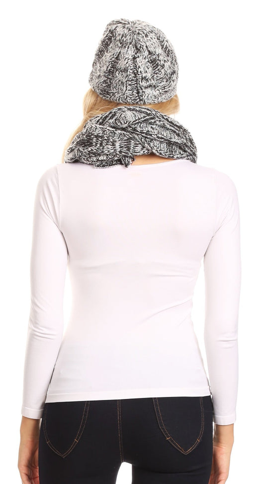 Sakkas Coline Soft Heather Chunky Cable knit Hat and Scarf Set Warm Cozy Winter