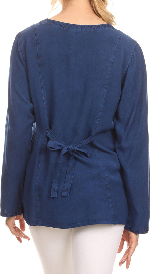 Sakkas Fedella Deep Scoop Neck Long Sleeve Blouse Top With Adjustable Back Straps
