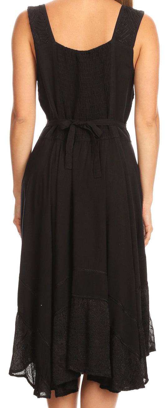 Sakkas Lila Women's Midi Sleeveless Floral Boho Casual Rayon Dress Adjustable