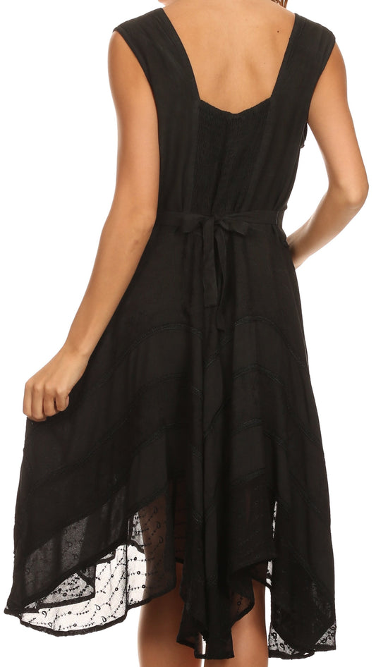 Sakkas Sundara Stonewashed Rayon Embroidered Mid Length Dress