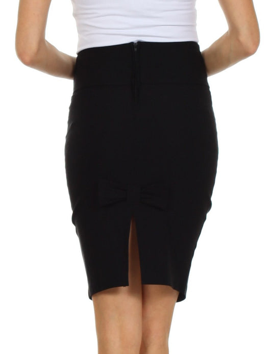 Sakkas High Waist Stretch Pencil Skirt with Rear Bow Accent