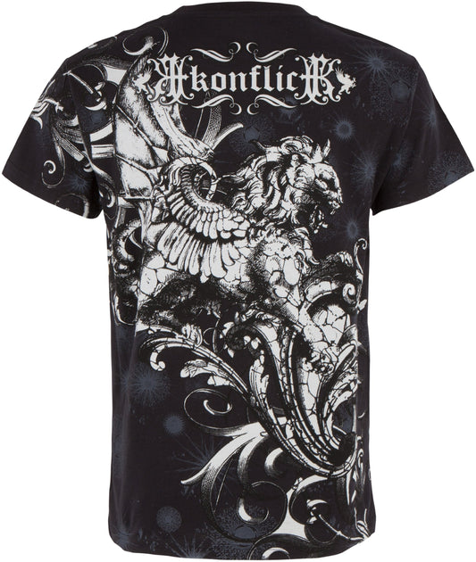 Sakkas Lion and Vines Metallic Silver Embossed Cotton Mens Fashion T-Shirt