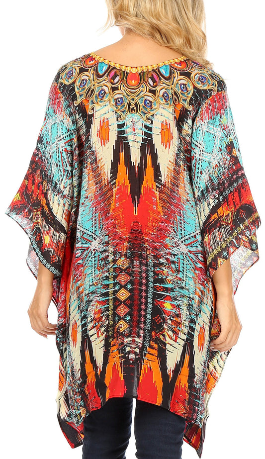 Stylish Rhinestone Lace-Up V-Neck Women's Caftan Poncho Cover-Up by Sakkas Aymee
