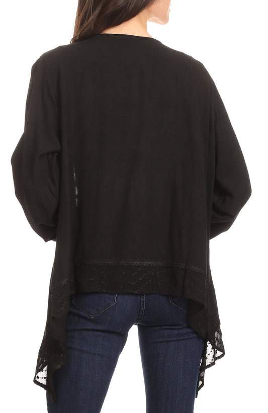 Sakkas Isenia Cardigan Open Front Kimono Long Sleeve Embroidered Top Blouse Lace