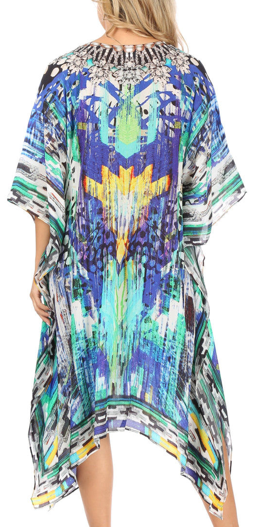 Sakkas Livi Women's V Neck Beach Dress Cover up Caftan Top Loose with Rhinestone