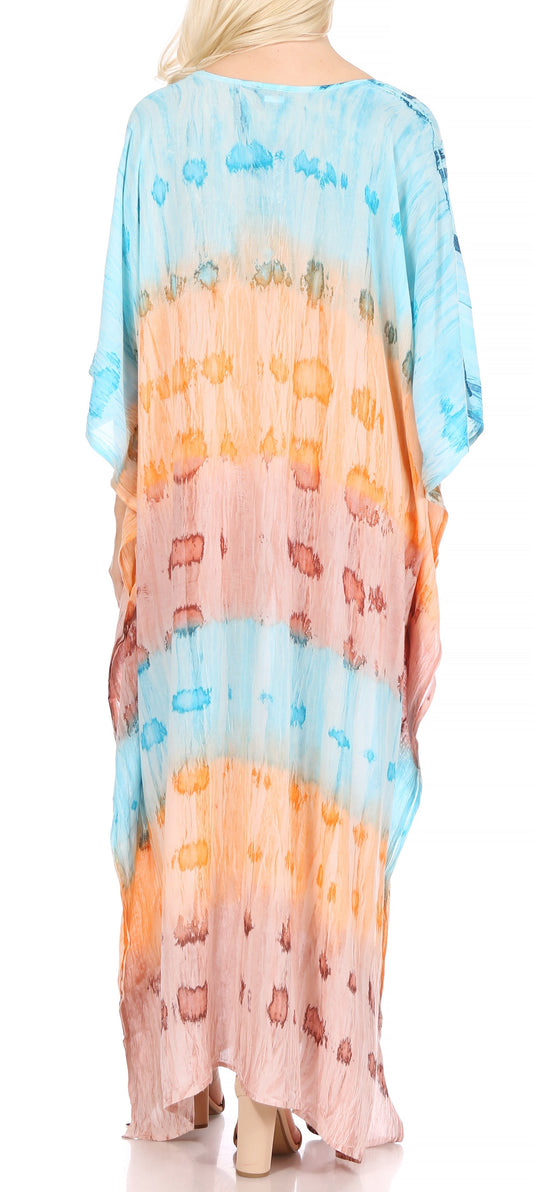 Sakkas Kristy Long Tall Lightweight Caftan Dress / Cover Up With V-Neck Jewels