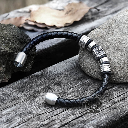 AG Woven Stainless Steel Leather Masonic Bracelet