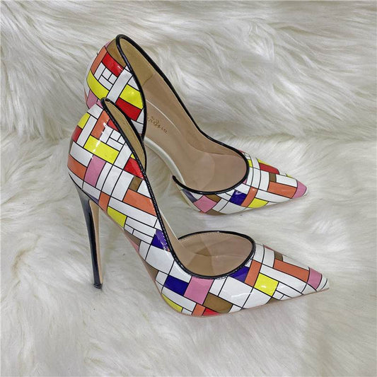 Plaid Colored High Heels - 12 cm Pointed Toe Stiletto Pumps