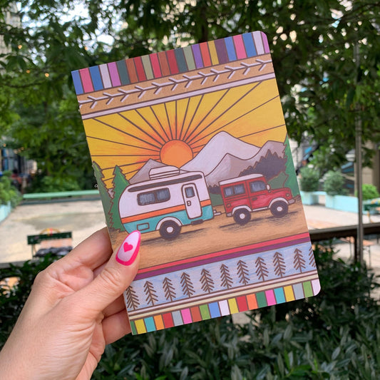 Camper Double-Sided Journal | Wood Burned Camper Trailer Art Designs Notebook