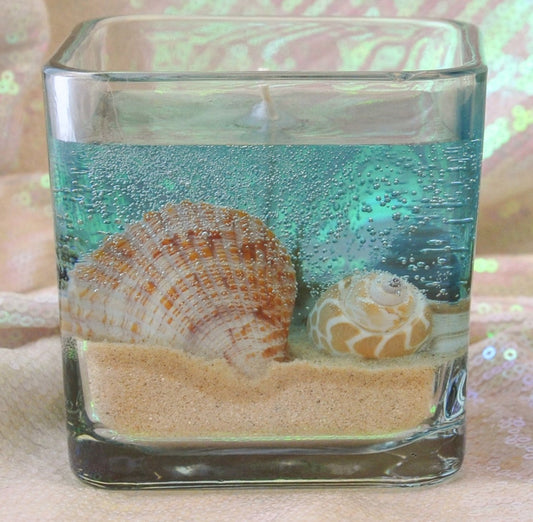 Seascape Gel Candle - Scented - Real Sand & Shells - 10 oz Square