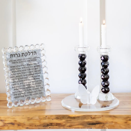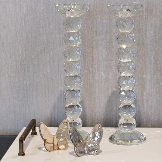 Pair of 10” Two Tone Crystal Ball Candlesticks