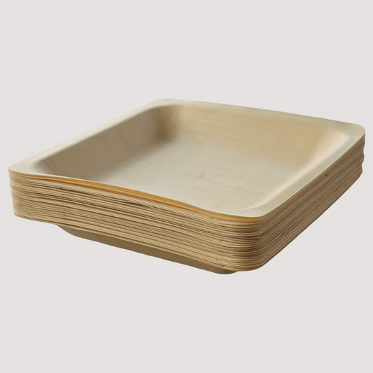 Eco Friendly Square Wooden Plate 4.5" (500 Pack) Buy By Box $0.25 each Free shipping - like Bamboo and Palm leaf