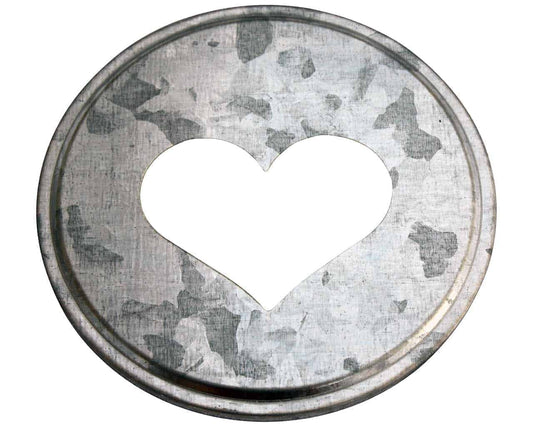 Heart Cutout Galvanized Metal Lid Inserts for Mason Jars 10 Pack