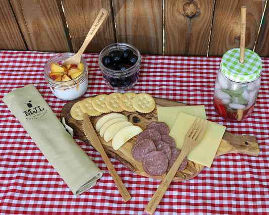 Travel Bamboo Utensil Set With Cotton Roll-Up Carrying Case