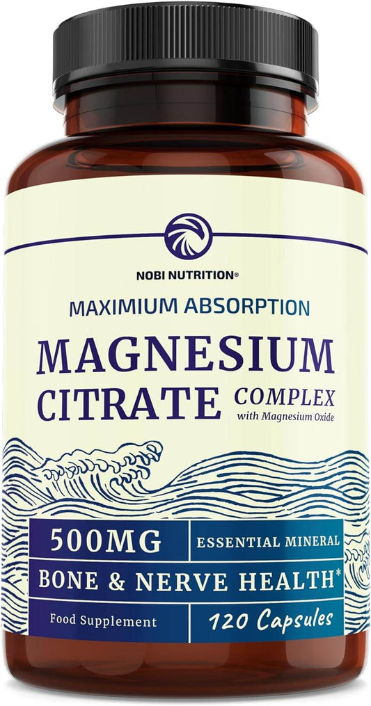 Magnesium Citrate Complex | 500 MG | Constipation Support | High Absorption Formula | Calm, Relaxation & Digestion Support Supplement with Elemental Magnesium Oxide | Gluten-Free, Soy-Free 60 Capsules