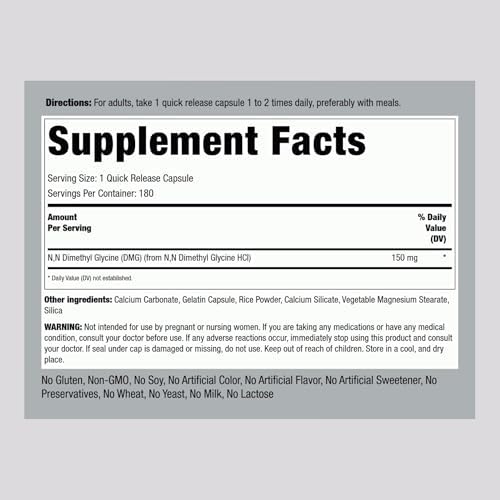 Piping Rock DMG Supplement | B15 | 150 mg | 180 Capsules | Non-GMO, Gluten Free