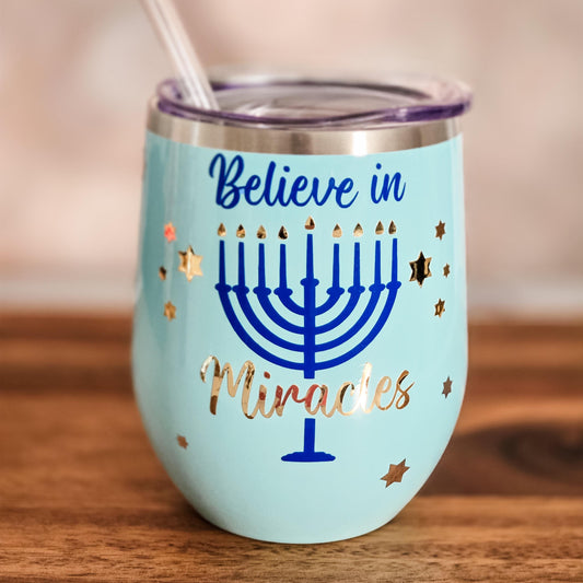Believe in Miracles Unicorn Chanukah Wine Tumbler