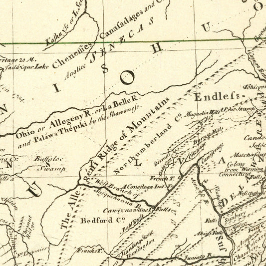 Vintage Map of the Middle British Colonies in North America 1755