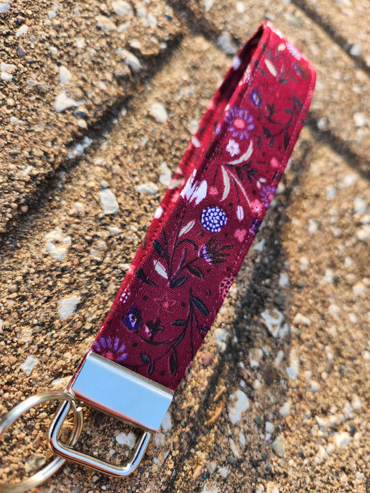 Floral Maroon Keyfob Wristlet Keychain