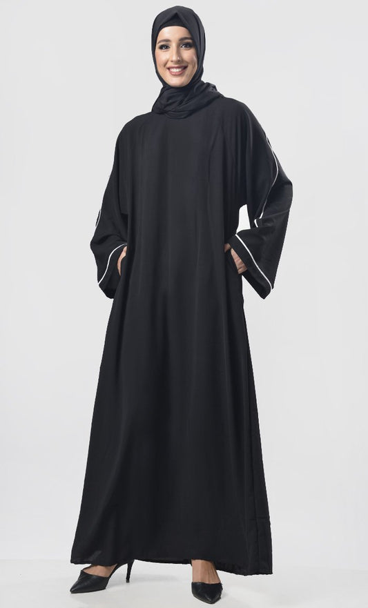 Contrasted Multi-Panel A-Line Abaya With Button Down And Included Pockets