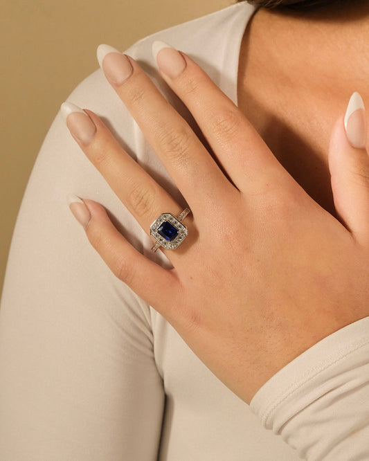 Sterling Silver Emerald Cut Sapphire CZ Cocktail Ring
