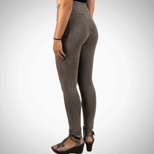 A Perfect Fit Mineral Washed Pocket Leggings Made in USA Taupe
