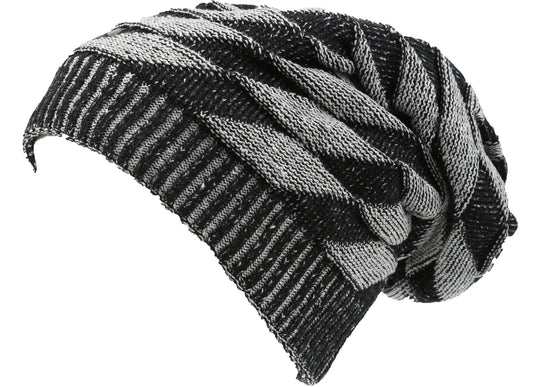 Sakkas Zaye Long Tall Slouchy Diamond Patterned Knit Faux Fur Lined Beanie Hat