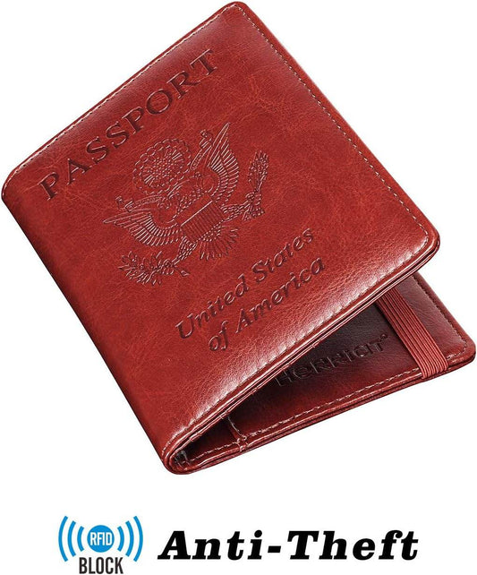 Leather Passport Holder Cover Case and RFID Blocking Travel Wallet/Card Case for Women and Men