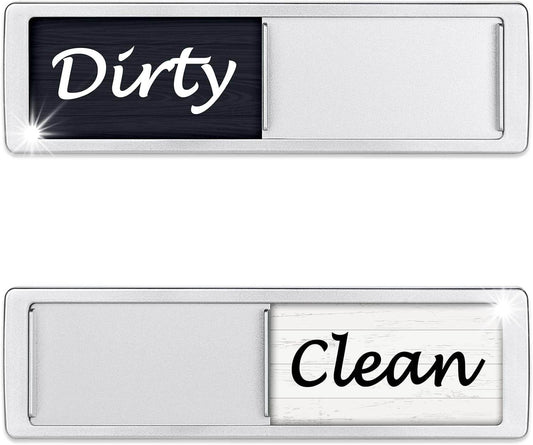 Dishwasher Magnet Clean Dirty Sign Shutter - Only Changes When You Push It Non-Scratching Strong Magnet or 3M Adhesive Options Indicator Tells Whether Dishes are Clean or Dirty (1.Silver)