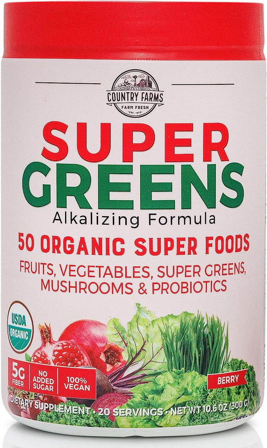 Super Greens Natural Flavor, 50 Organic Super Foods, USDA Organic Drink Mix, Mushrooms & Probiotics, Supports Energy, 20 Servings, 10.6 Oz