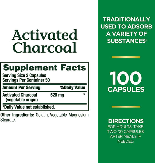 Nature's Bounty Activated Charcoal 260 mg, 100 Capsules, Dietary Supplement to Support a Healthy Lifestyle